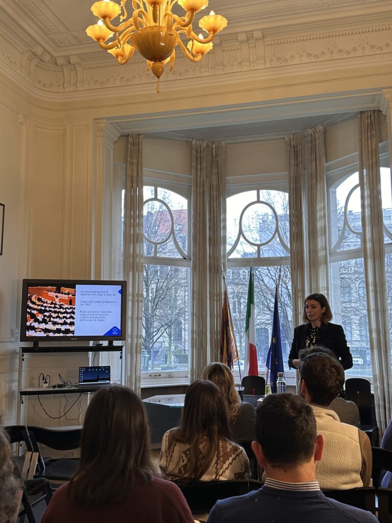 Il 12 dicembre abbiamo partecipato al seminario organizzato dalla Regione Veneto, dedicato ad alcune delle tematiche dell’Agenda territoriale condivisa. Sono intervenuti: Giovanni Collot, Policy Communications & EU Standardization di CEN-CENELEC, Mathieu Bourgeois, Policy & Campaigns Officer di Energy Cities, Clémentine Daubeuf, Project Coordinator di Eurocities, Monica Tiberi, Coordinatrice del Rapporto annuale sullo stato delle Regioni – COR, Isabel Castaño Ambrosio, Policy Officer alla delegazione permanente Castilla y León in UE & Demographic Change Regions Network DCRN, Elena Curtopassi, Social Policy Officer presso la Regione Veneto a Bruxelles. L’evento, riservato alla nostra delegazione, ci ha permesso di interagire con i relatori e approfondire argomenti chiave per lo sviluppo dei territori.