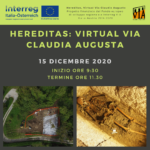 Martedì 15 dicembre alle ore 9.30 si terrà – in videoconferenza – l’evento finale del Progetto HEREDITAS, Virtual Claudia Augusta, finanziato dal Programma Interreg Italia Austria 2014-2020. L’incontro è finalizzato ad evidenziare i risultati ottenuti dal progetto ed analizzarne le possibili future prospettive. La conferenza è aperta al pubblico e verrà trasmessa attraverso la piattaforma ZOOM, per partecipare[…..]