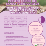 INCONTRO PUBBLICO DI PRESENTAZIONE DEL BANDO ISL06 “Investimenti agricoli non professionali in area montana” dedicato a piccoli imprenditori agricoli non professionali