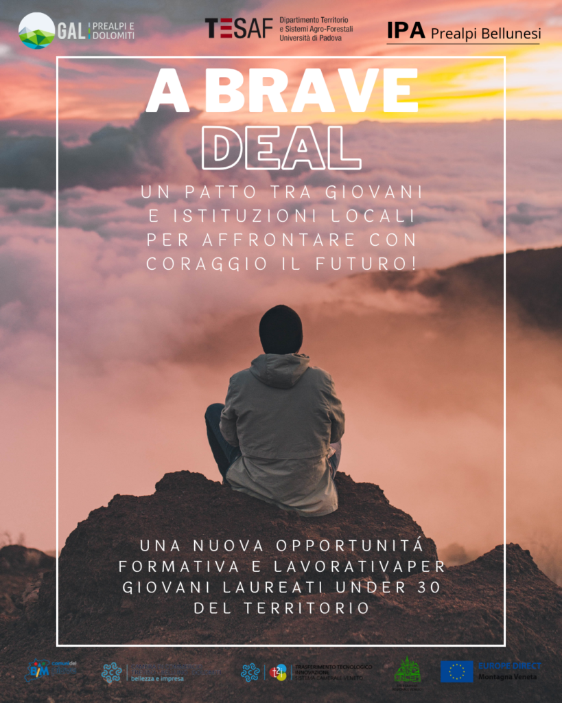 In data 06/02/2025 è stato pubblicato l’Avviso di selezione per la partecipazione al progetto pilota “A Brave Deal – Un patto tra giovani e istituzioni locali per affrontare con coraggio il futuro” che prevede di accompagnare cinque giovani laureati e cinque istituzioni locali sovraccomunali in un inedito percorso di rafforzamento delle competenze amministrative e di approccio alle sfide territoriali!