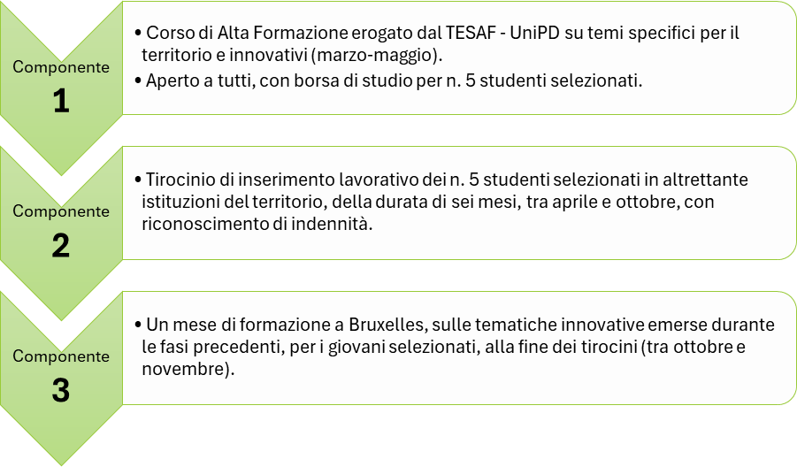 Inserimento in un’istituzione locale sovraccomunale attraverso un tirocinio extracurriculare, continuando a lavorare e ragionare sui temi emersi nel Corso e ricevendo un’indennità di €850 al mese;