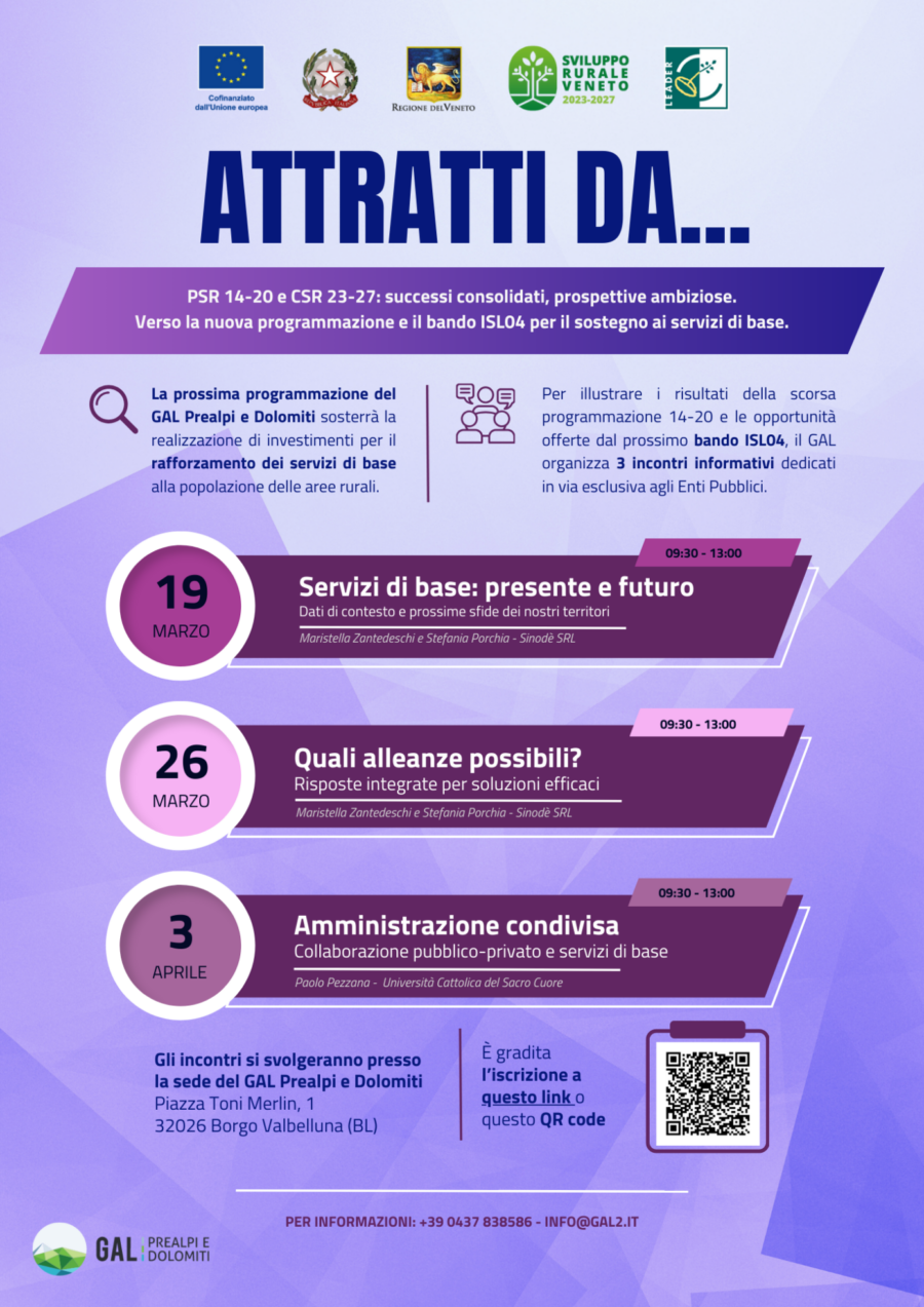 Pubblicato il bando ISL04 “Investimenti non produttivi nelle aree rurali” dedicato a Fondazioni e Associazioni senza scopo di lucro Il GAL Prealpi e Dolomiti ha pubblicato il bando pubblico ISL04 “Investimenti non produttivi nelle aree rurali”. L’iniziativa