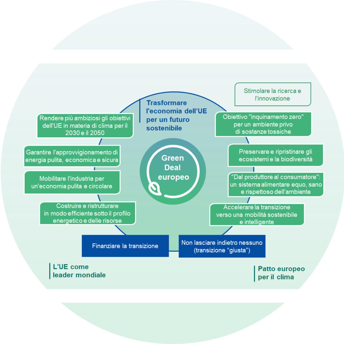 Se vuoi conoscere meglio il Green Deal, visita la pagina ufficiale nel sito dell’Unione europea: https://ec.europa.eu/info/strategy/priorities-2019-2024/european-green-deal_it#documents