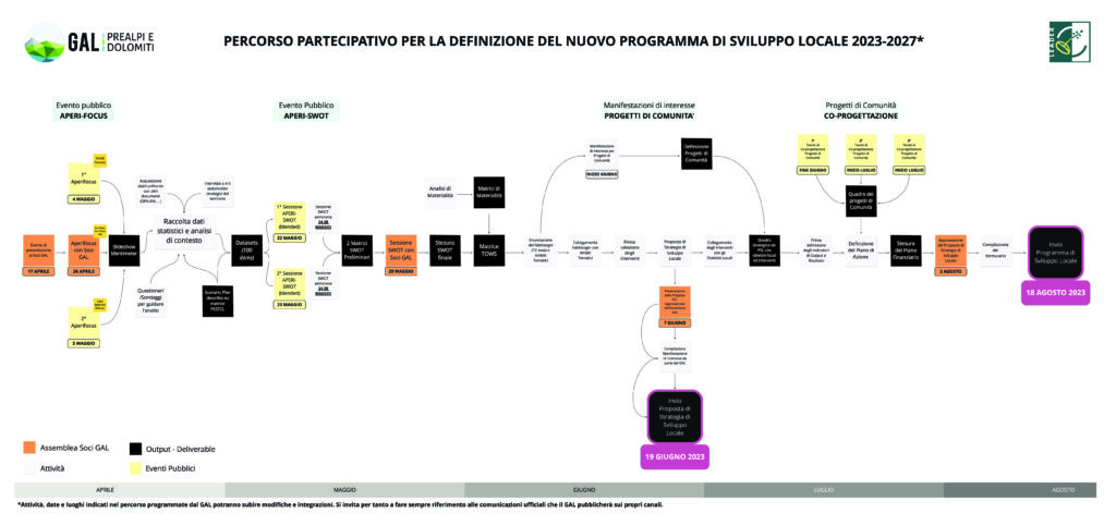 A questo link è possibile visionare il cronoprogramma delle attività che il nostro GAL svolgerà nei prossimi mesi. Si tratta di un percorso articolato e ricco di opportunità di incontro nel territorio, con i cittadini, gli enti pubblici, le imprese e gli associati.