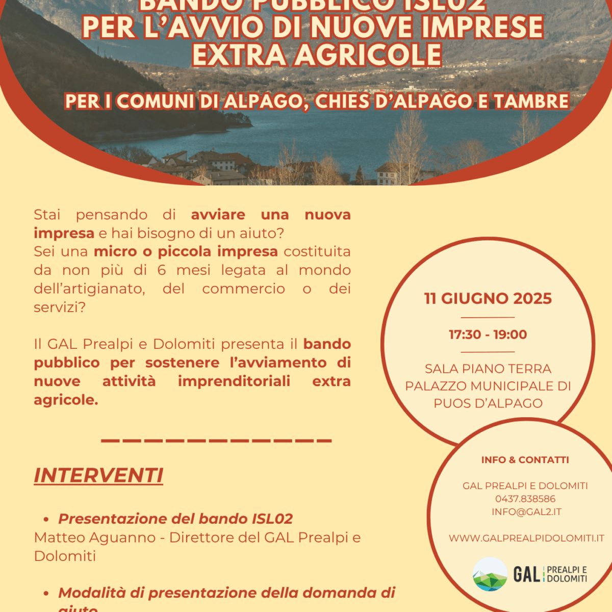 ISL02 “AVVIAMENTO DI ATTIVITÀ EXTRA AGRICOLE” PER I COMUNI DI ALPAGO, CHIES D'ALPAGO E TAMBRE