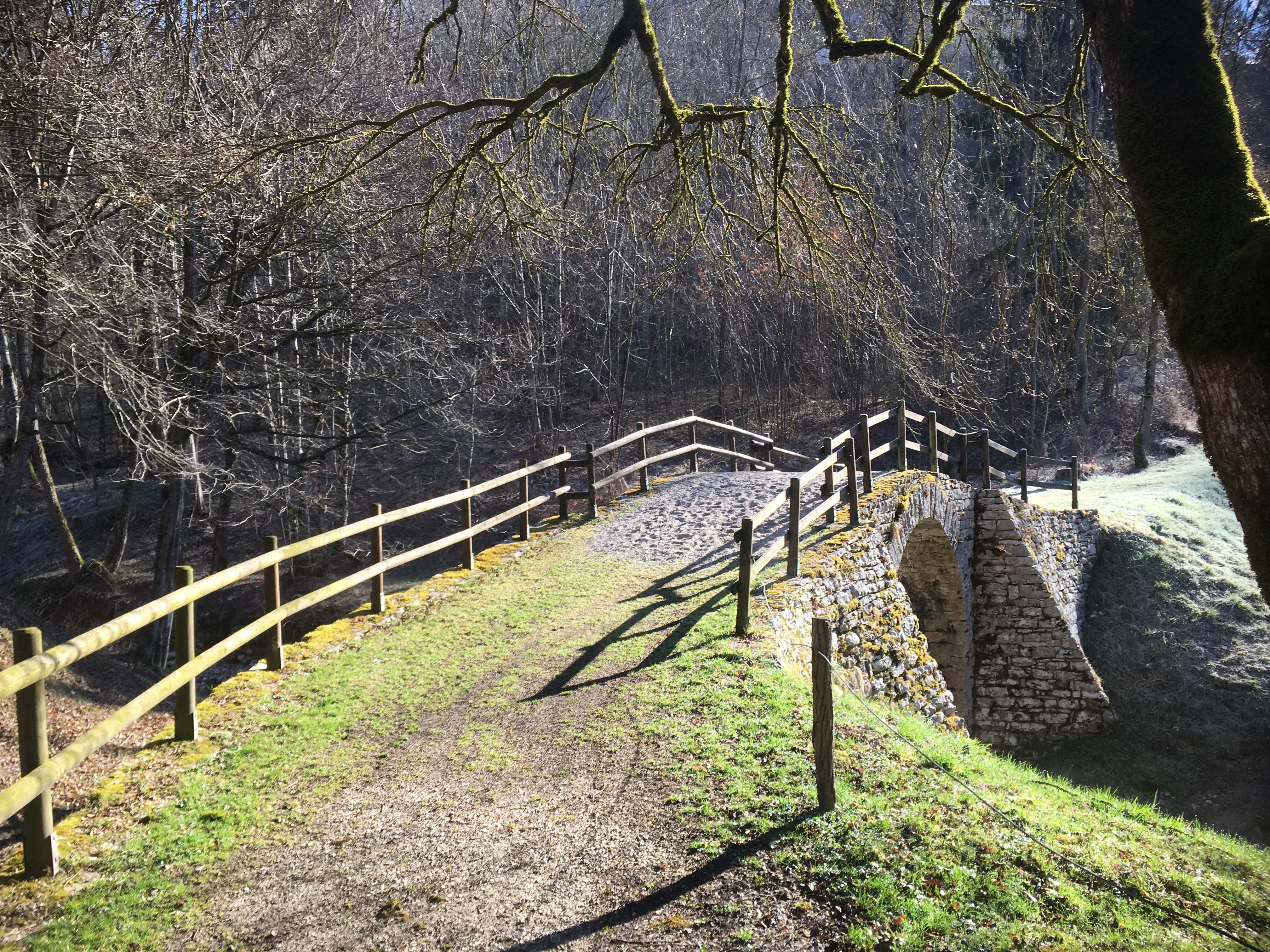Nelle immagini un tratto del tracciato oggetto di intervento e il Ponte Romano che caratterizza la via Claudia Augusta sul territorio lamonese