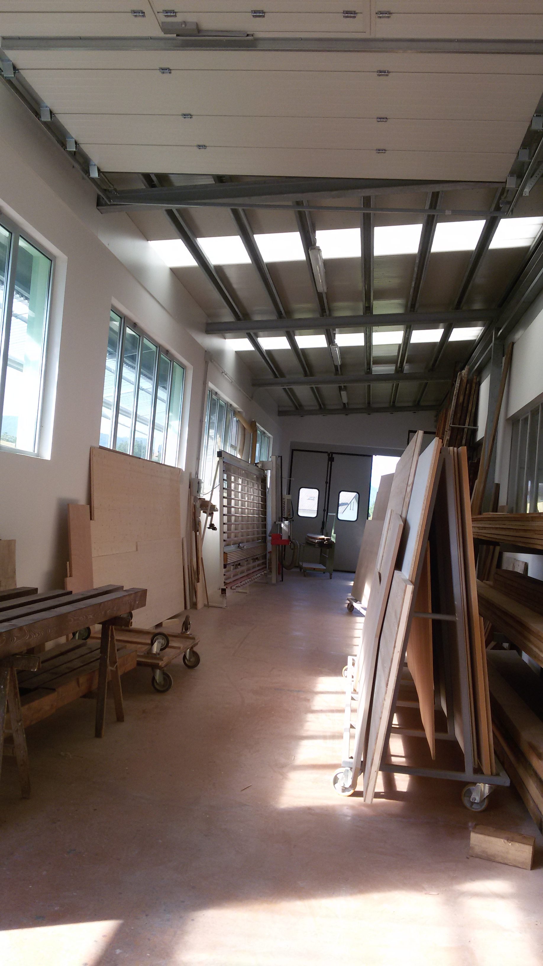 - l’ampliamento del magazzino, attraverso tamponamento di una parte di tettoia esterna attualmente adibita a deposito scorte (legnati), per ricavare magazzino chiuso.
