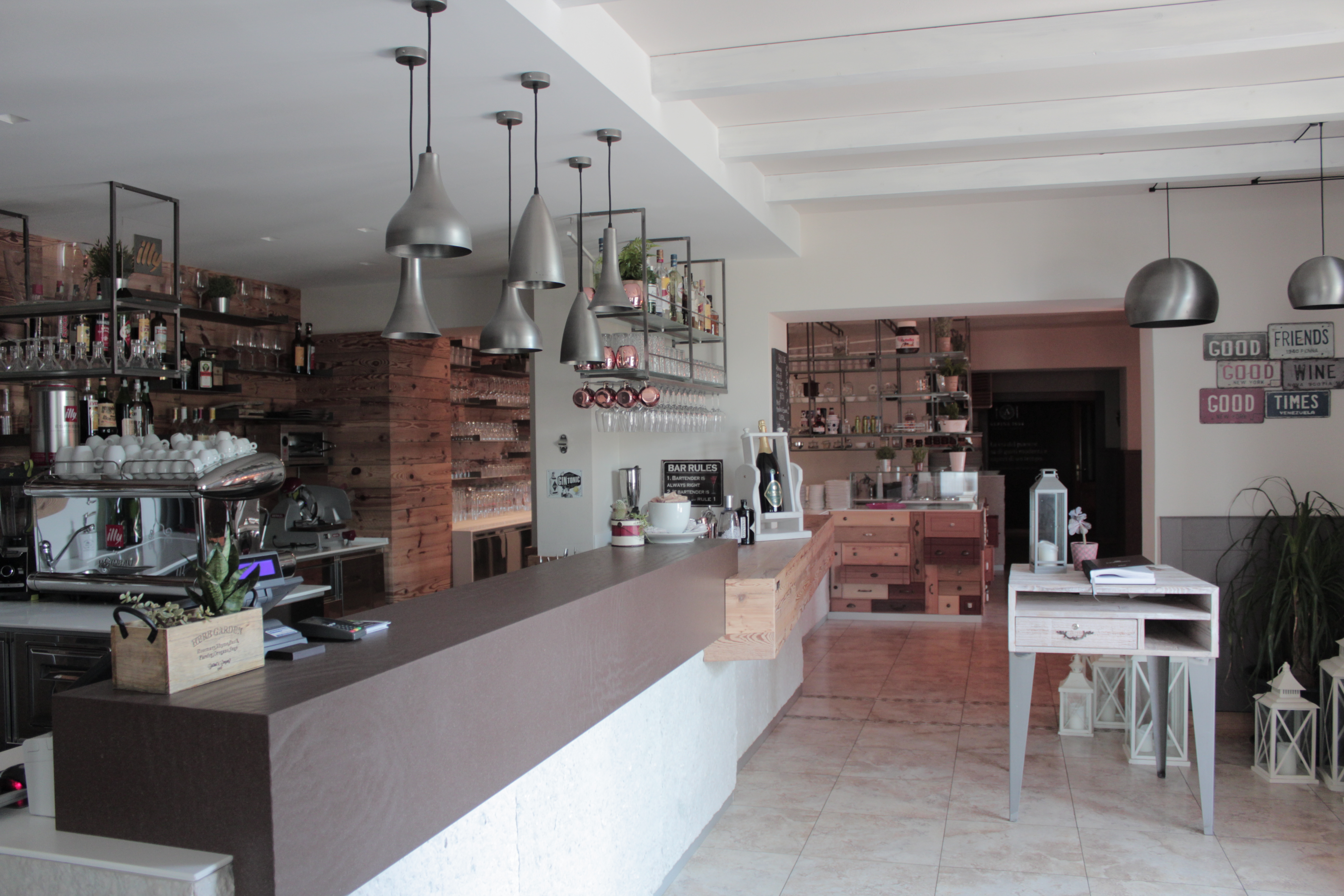Ampliamento degli spazi destinati all’accoglienza del cliente e degli spazi dedicati all’aperitivo, con realizzazione di una workstation e zona finger food, in funzione di una diversificazione dell’offerta e dei target di riferimento.