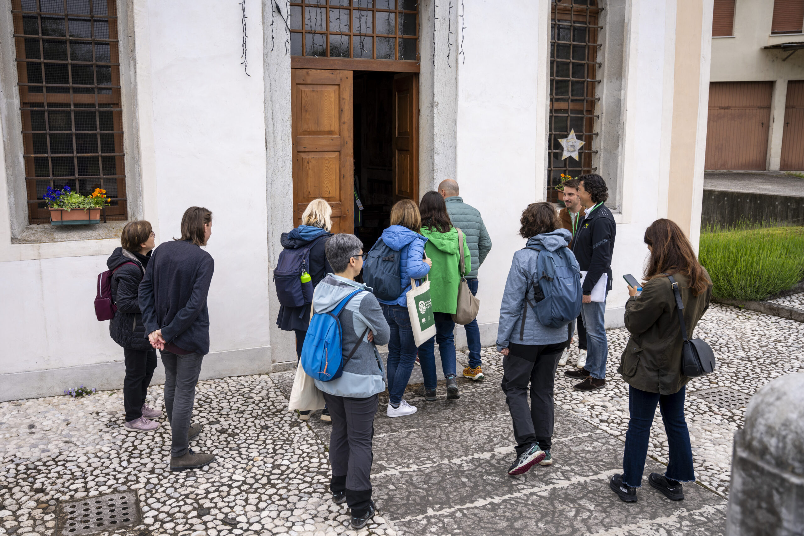 Ultima tappa nella frazione di Bardies, dove è stata visitata la Chiesetta di Sant’Antonio Abate, piccolo gioiello rinascimentale noto per gli affreschi di Giovanni da Mel. Il restauro dell’edificio, realizzato grazie ai fondi del PSR Veneto 2007-2013, ha permesso la riqualificazione del sagrato e il miglioramento strutturale dell’edificio, contribuendo alla conservazione del patrimonio artistico e culturale della zona.